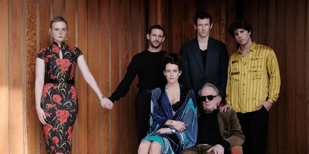 The scream is a motif that carries through the film far beyond the spectacle of its primary colors. Rosebush Pruning sketches the downfall of a wealthy American family now living in Spain. They are so wealthy that they really have nothing to do, and they never have. Their entire lives have been marked by such boredom and ease that it has disfigured them into characters that are hardly more than Freudian fixations. The father (Tracy Letts, who deserves so much better) is controlling in his opinions, entirely self-focused, and suffers from blindness—subtle enough? The mother has died, torn apart by wolves, or so claims the father. As for the children, they are a hodgepodge of psychosexual deviances: When he’s not arbitrarily hitchhiking, Ed (Callum Turner) is the voyeur of the family, observing and commenting on the others. Anna (Riley Keogh), the only woman and manipulator, twists everyone in knots. Robert (Lukas Gage) lusts the most openly with an incestuous desire that extends well beyond his control. Then there’s Jack (Jamie Bell), who’s supposedly “the most normal,” though clearly far from healthy.